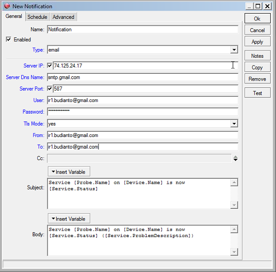 Klik Apply-OK. Silahkan di coba untuk melakukan shutdown pada device kemudian check di inbox email untuk memastikan bahwa notifikasi berjalan dengan baik.